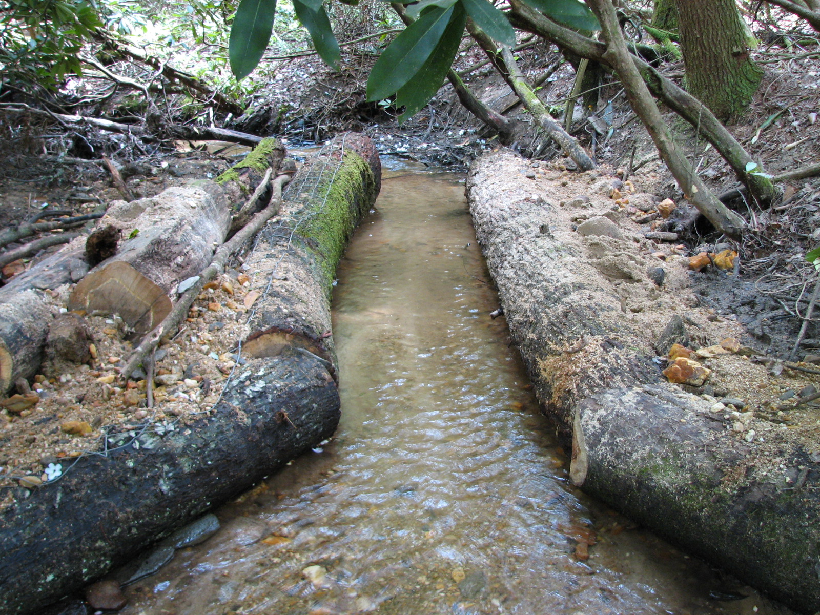 Flow constrictors placed in Pretty Branch to restore deep channel habitat for brook trout.