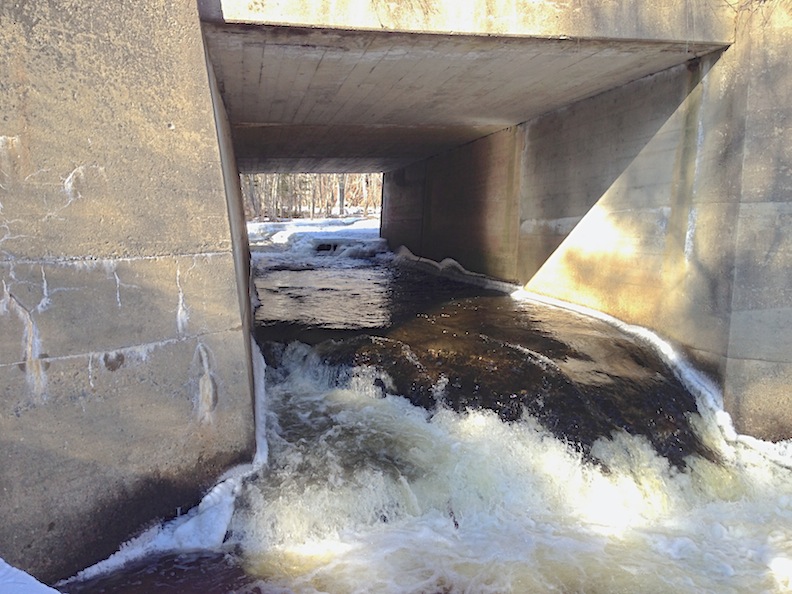 This photograph shows Patten Stream during the winter. The area is located below the Surry Road bridge.